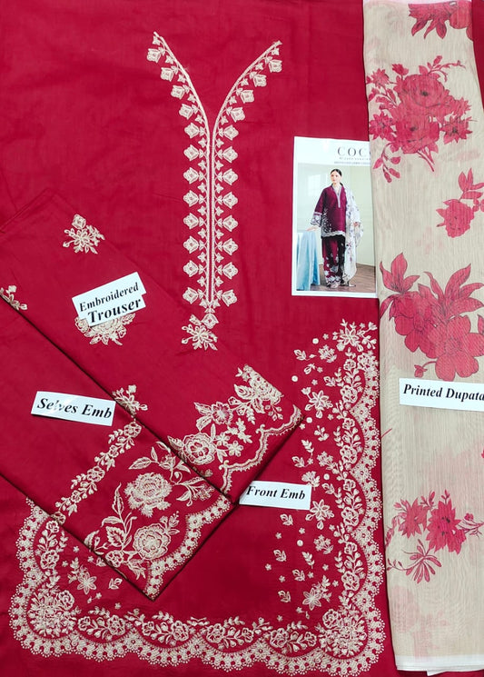 BAREEZE LAWN EMBROIDERY 3PC SUIT | RADISH MAHROON