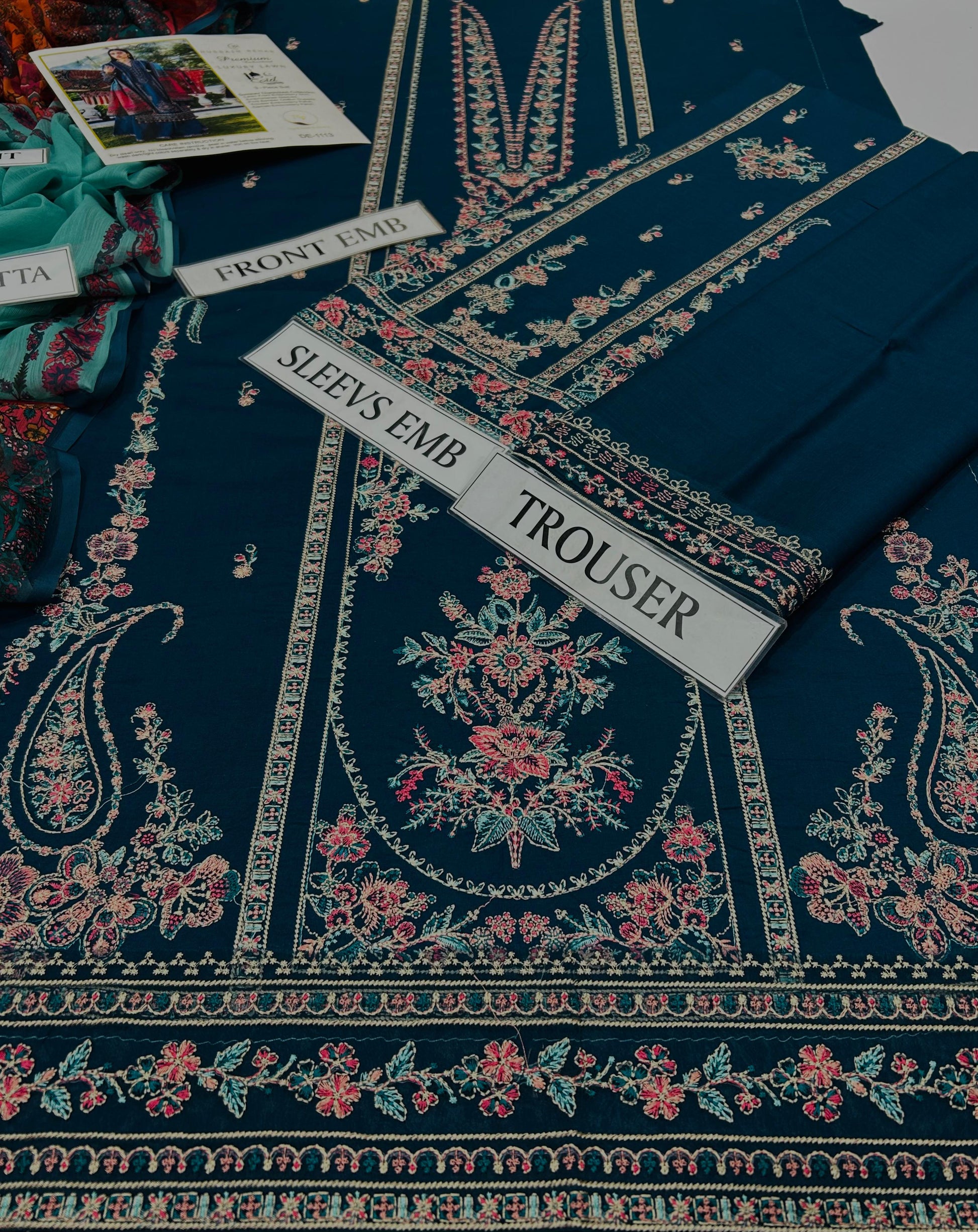 3 pc luxury lawn embroidery suit by Hussain Rehar code #001